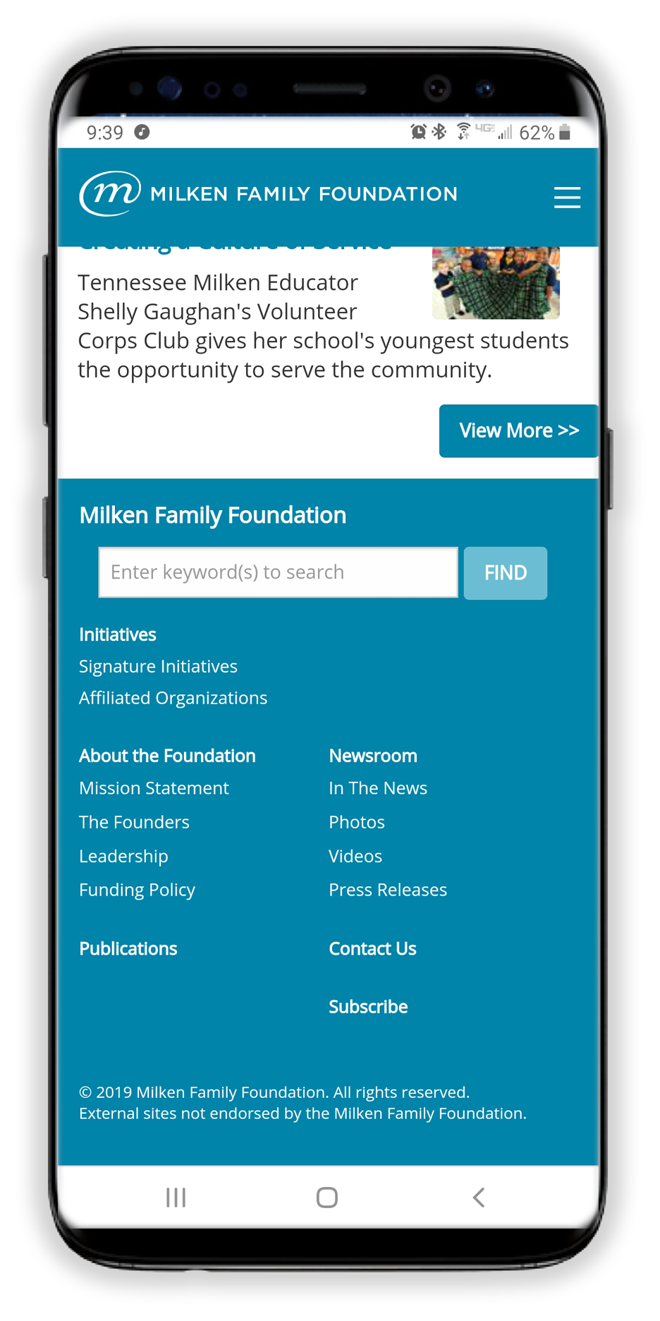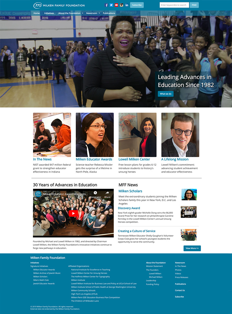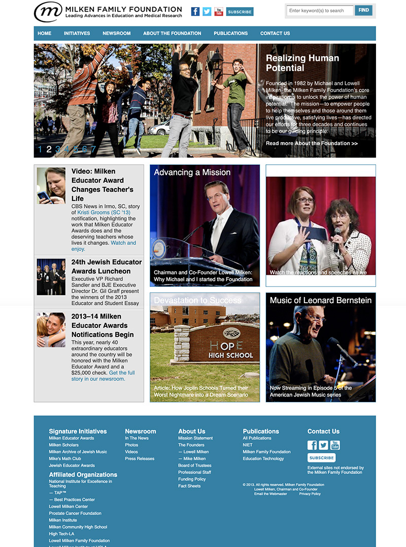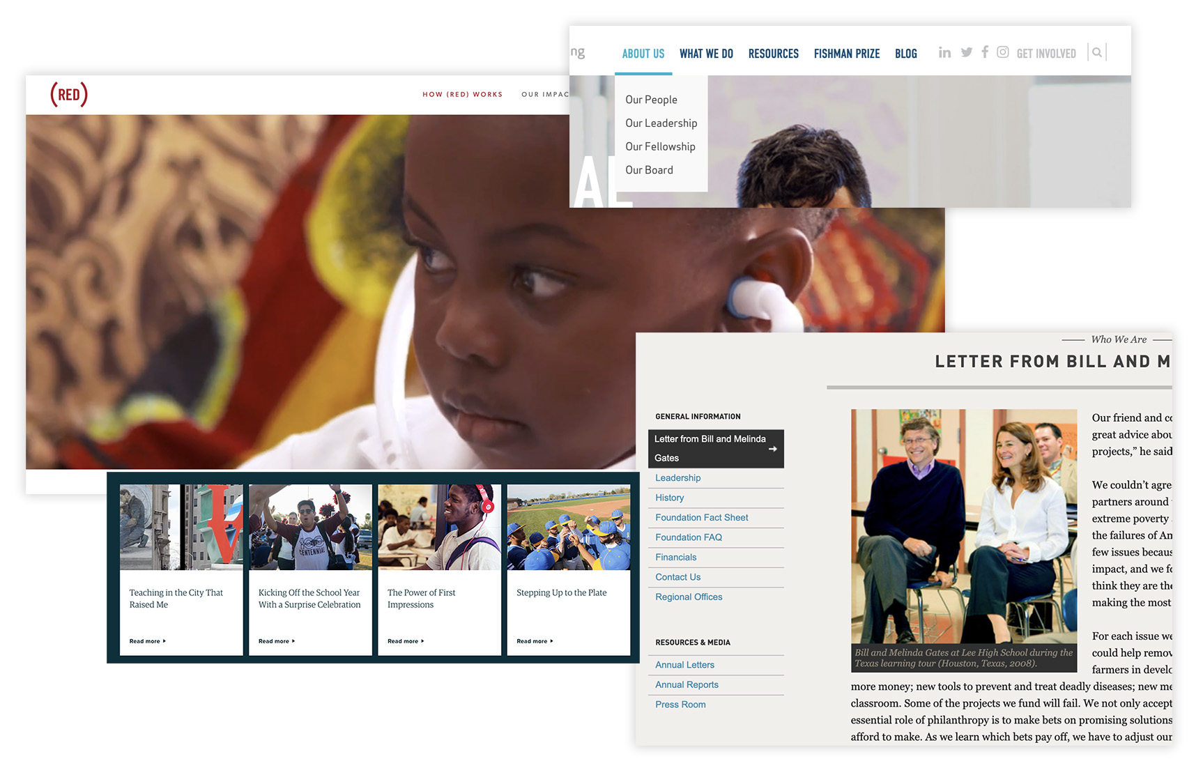 The main challenge was that the Foundation branding contained only one color, which the organization wanted to maintain across all aspects of the redesign. This meant the site would use only tonal values of the color to express everything from navigational menus to links to buttons to backgrounds.