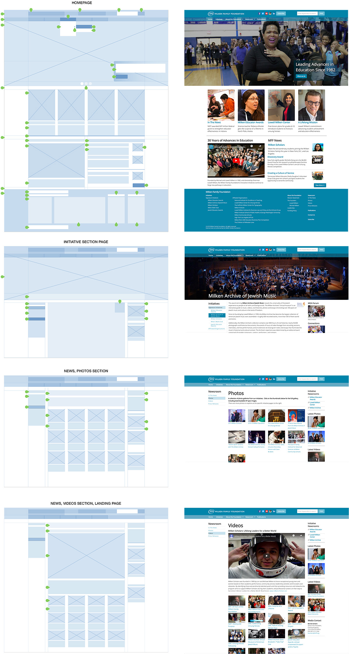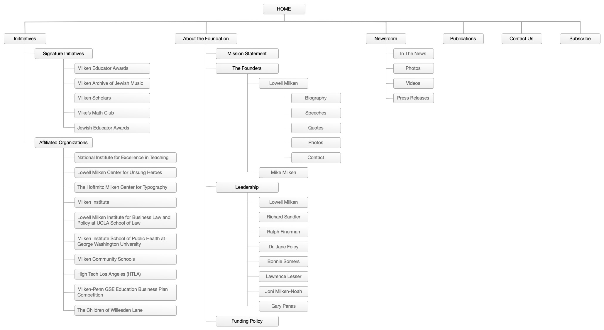 First the basic site structure was mapped out, and specific areas of the site addressed for content that would be expanded and/or aggregated. One of the Founders of the organization was to be given a specific section of his own, and Publications would become a single scrolling page.